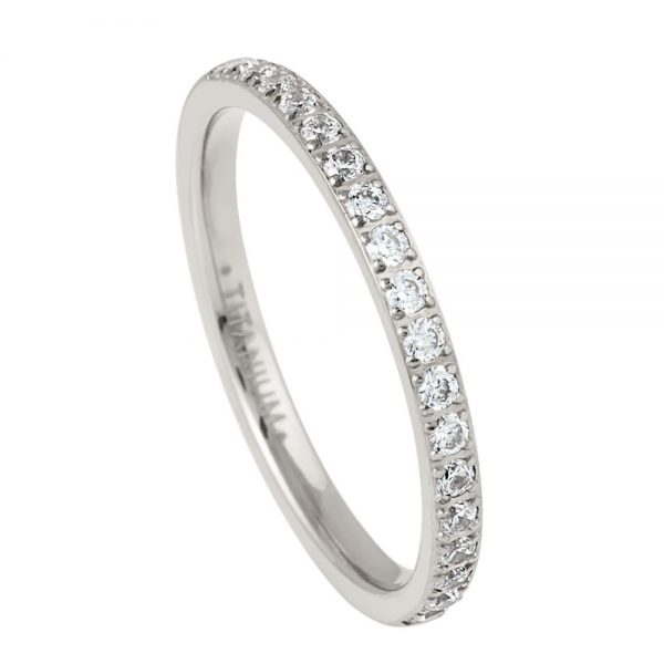 This elegant Titanium ring features a sleek 2mm band crafted from durable titanium. A sparkling half eternity design is adorned with brilliant 2mm white Cubic Zirconia stones, adding a touch of sophistication and shimmer. Perfect for everyday wear or special occasions, this ring offers a modern and timeless appeal.